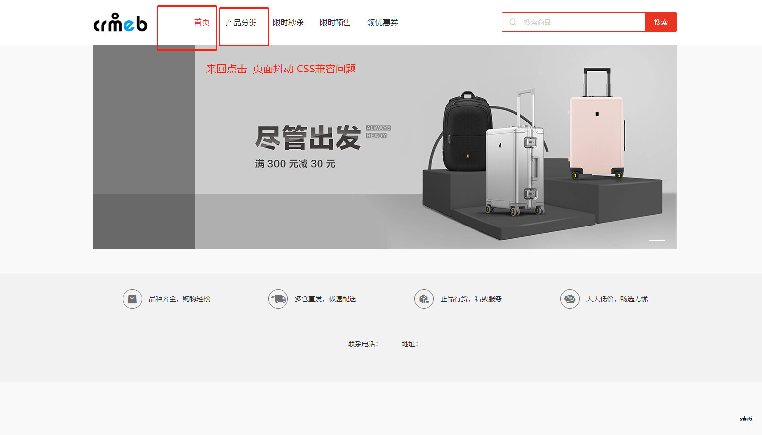 標(biāo)準(zhǔn)版V4.3 pc端 首頁(yè)跟 產(chǎn)品分類來(lái)回點(diǎn)擊 或者在 首頁(yè) 直接刷新 會(huì)出現(xiàn) 導(dǎo)航欄抖動(dòng)情況 是否是CSS沖突導(dǎo)致, 在首頁(yè)一直刷新 網(wǎng)站會(huì)小范圍抖動(dòng) 首頁(yè)加載順序 跟內(nèi)頁(yè)不同 是否能更新
