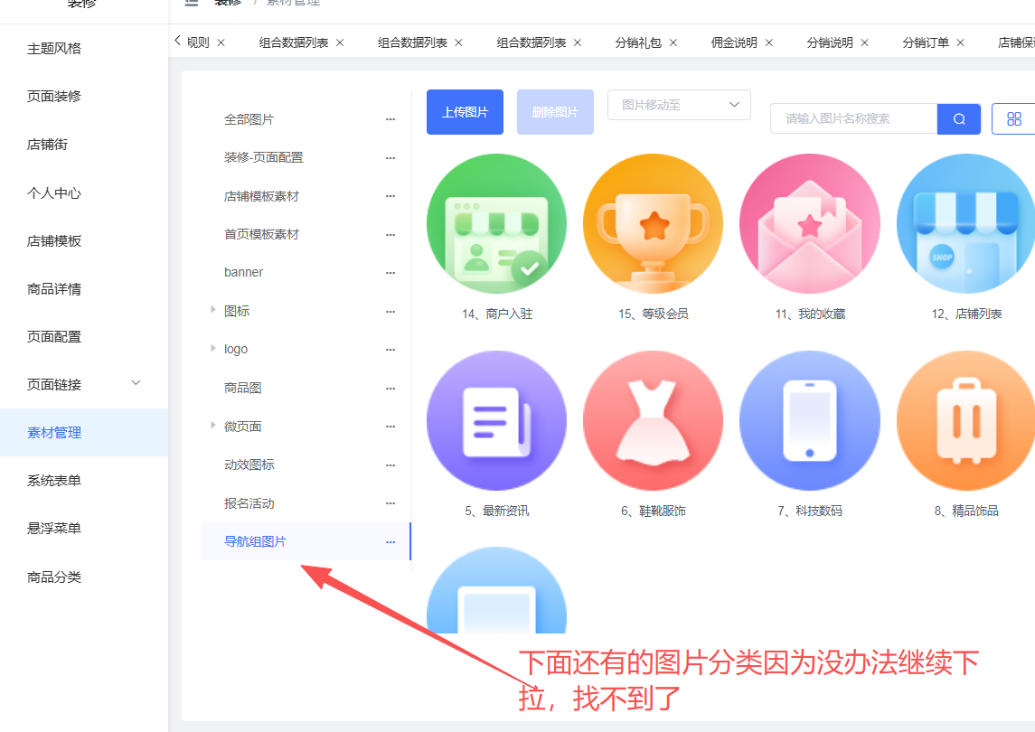 素材管理 多的分類不顯示 沒辦法下拉 具體請見圖片